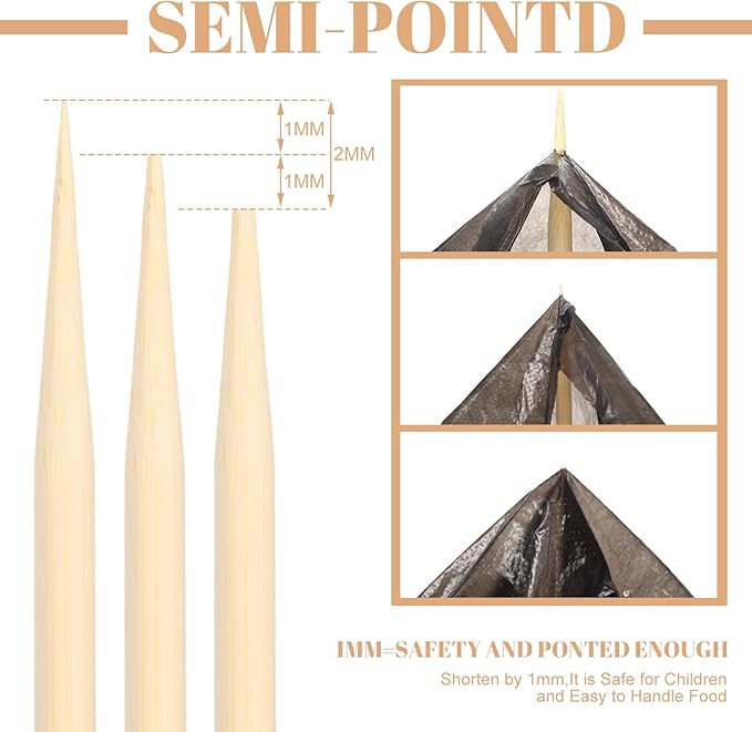 - 【Skewers for Smores】You will get 300pcs long bamboo marshmallow roasting sticks,enough for multiple hiking/camping trips or multiple barbecue parties.