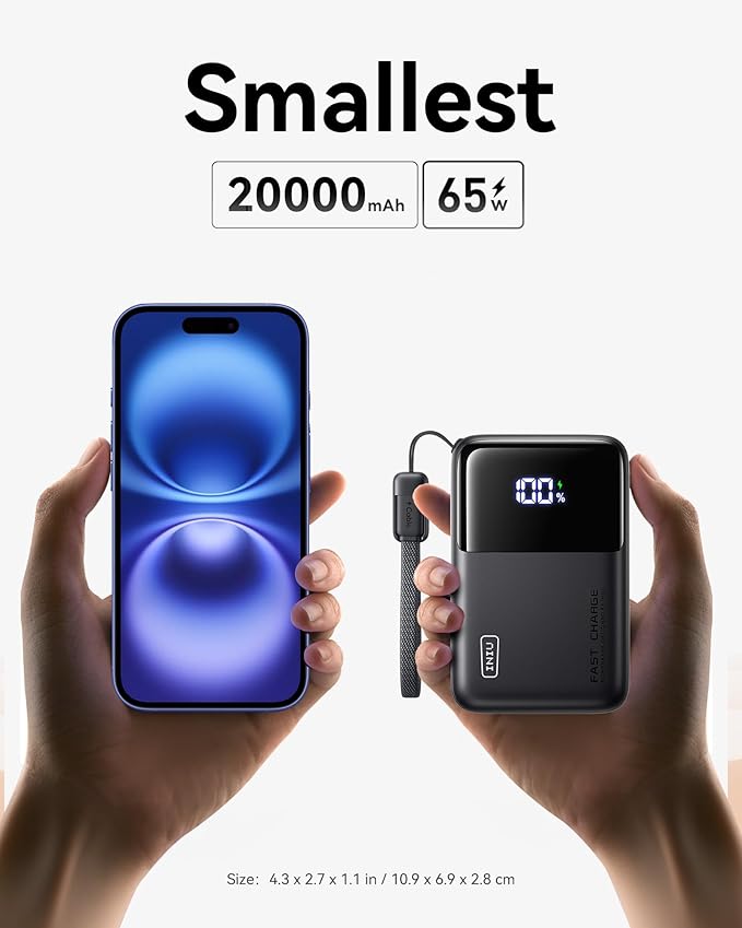 - Market's Smallest 65W 20000mAh: Equipped with iNiu's industry-first high-density TinyCell and groundbreaking HyperStack technology, this power bank breaks the size limits of high-capacity chargers. No more bulky bricks, just compact portability.