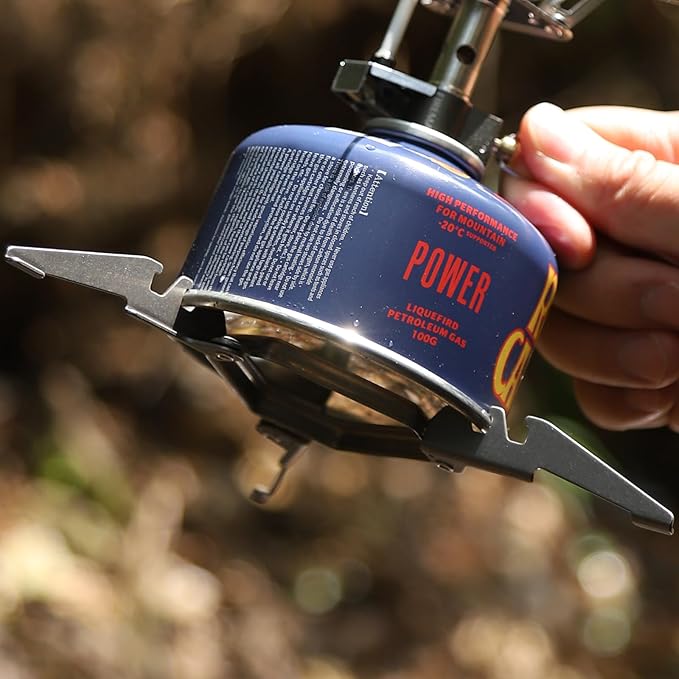 - The gas canister stand is made of sturdy titanium material, durable and lightweight, and only weighs 23g.