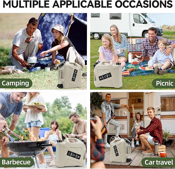 - 【Multifunction Use】The water storage can be used to store drinking water, beer, drinks for camping, camping, picnics, barbecue, and hiking. The water storage can be used to quickly and safely store all the water your family needs in the event of natural disaster. It provides you with a reliable source of water wherever you go for outdoor activities.