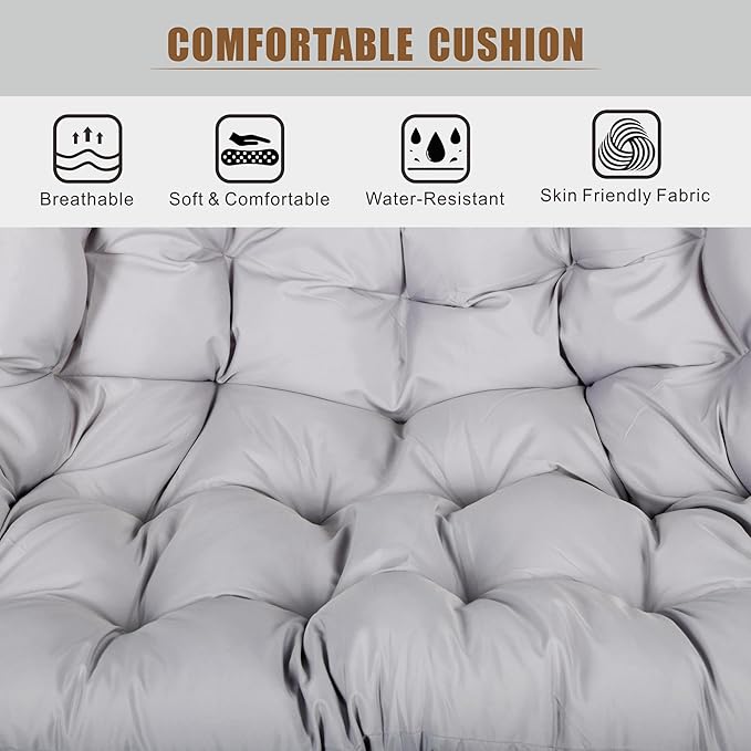 - 【Suitable for You】Double seats, more suitable for couples, couples and families. This Indoor Outdoor Wicker Egg Chair seamlessly integrates into your living room, bedroom, porch, or garden, complementing diverse decor styles.