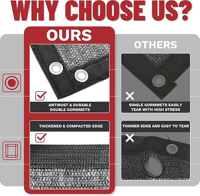 - 70% Shade Rate: Shademart Shade Cloth blocks 70% of sunlight, reducing solar exposure and lowering temperatures. It promotes airflow, reduces water evaporation