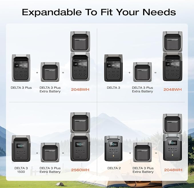EF ECOFLOW Portable Power Station DELTA 3 Plus with Smart Extra Battery, Expand Capacity from 1024Wh to 2048Wh, Solar Generator for Emergency, Home Backup, Outdoor Camping