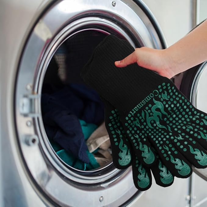 - Easy to clean and store: Our heat resistant gloves can be easily cleaned either by machine washing or hand washing. The inner side of the cuffs features a convenient loop for hanging and drying, making storage a breeze.