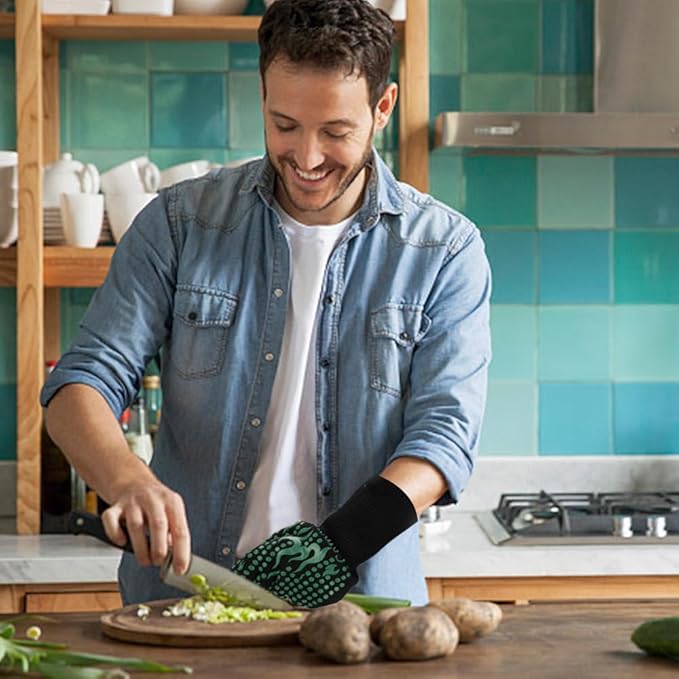 - Heat Resistant: Our BBQ gloves are designed to provide protection for your hands while cooking, grilling, baking, or handling hot pots. With an instant heat resistance of up to 1472°F, these gloves are perfect for high-temperature cooking and baking.