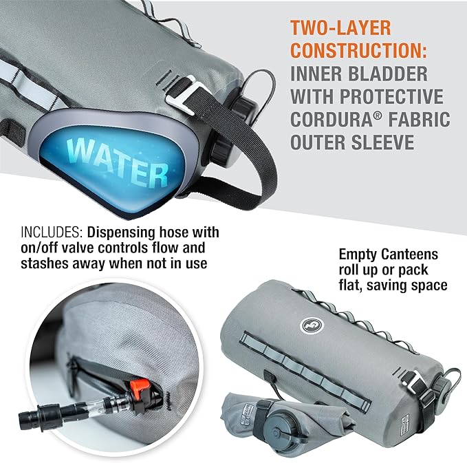 - SAVES SPACE: Stop worrying about your delicate hydration bladder or where to store your hard-sided water containers, and strap the Cactus Canteen anywhere you’d like! Empty Canteens roll up or pack flat, saving space.