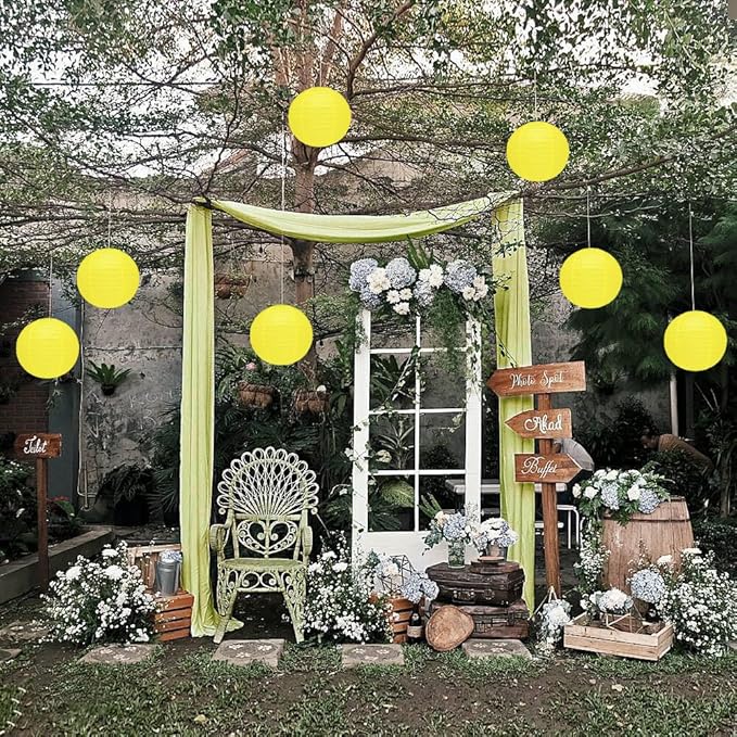 10Pcs 16 Inch Round Paper Lanterns for Home Decor, Restaurant, Church, Wedding, Birthday Party Decorations, Hanging Chinese Japanese Paper Lantern Lamps (Yellow)