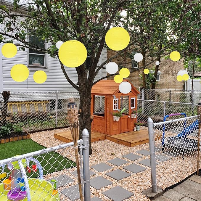 - ?�Material?? The round paper lanterns are made of quality thin paper and wire bracket. Thin paper can let the light come through. You can DIY beautiful lampshades according to your own preferences. They are lightweight. Please keep the paper lanterns away from the fire and rain.