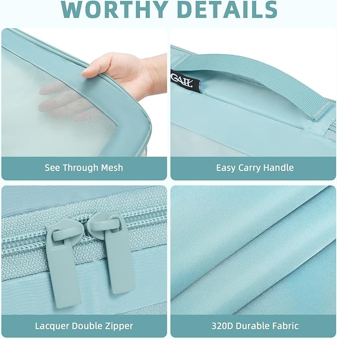 - ORGANISED&DURABLE:Super Durable 320D Fabric and Considerate Designed Construction Ensures Storing Your Clothes Neatly in Luggage without Adding Extra Weight.Premium Sturdy&Smooth Double Way Zipper with Extended Cord Ensure Fast&Easy Opening and Closing of the Packing Cubes.