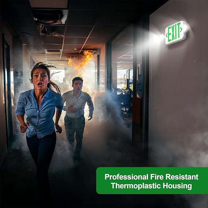 - [ PREMIUM QUALITY ] -- The emergency exit signs made of Injection-molded thermoplastic housing, UL-94V-0 flame rating, the thickness has good fire resistance, corrosion resistance and durability, not easy to damage and suitable for 0℃-40℃ (32°F-104°F) indoor damp location.