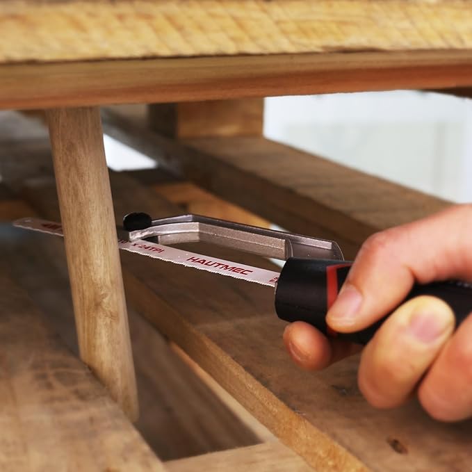 HAUTMEC Mini Hacksaw, 10" Compact Hacksaw with Cutting Guide Design, Tool-Free Blade Change, Compatible with 10"/12" Blades, Lightweight Hack Saw for Metal, PVC & Wood Cutting – HT0426