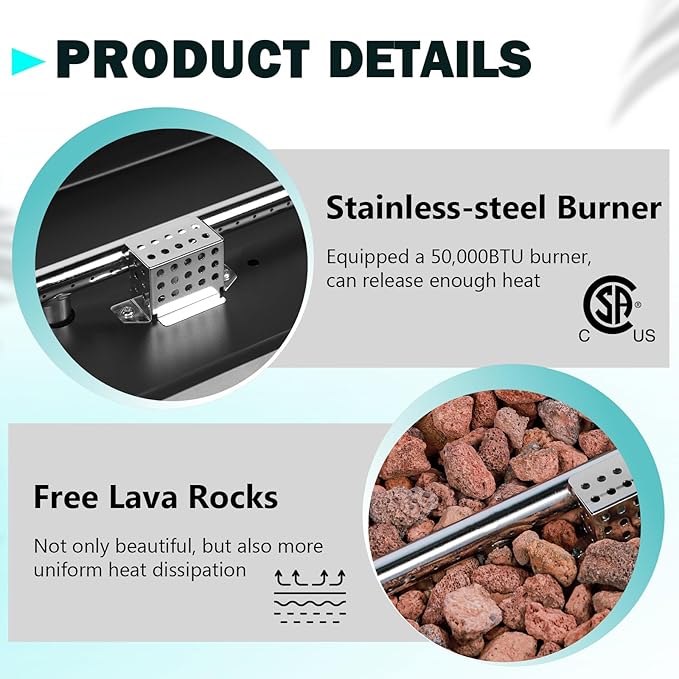 - Why Choose Us?:Our the fire pit table has high quality, and each firepit table has undergone rigorous testing to ensure reliable performance. We also have attentive after-sales service. If you have any problems after receiving the package, we provide customer service support that responds within 12 hours to solve your problem.