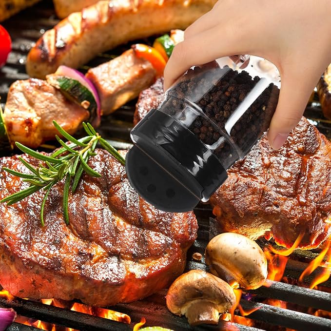 - 2 Independent Flip Lids: the flip lid design of the plastic seasoning container is smart and thoughtful, it can meet the precise amount of cooking, you can take it as you go, you don't have to remove the lid to measure the spices, if you just want to sprinkle the spices, the holes on the side of the shaker are large enough to allow dried herbs to pass through