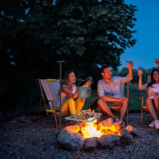 - 【Easy Installation】No bolts or tools but only several simple steps are required for the installation, which could be completed in less than 3 minutes. Come with a storage bag for easy carrying. our open fire cooking equipment is designed for the specific needs of campers and outdoor adventurers.