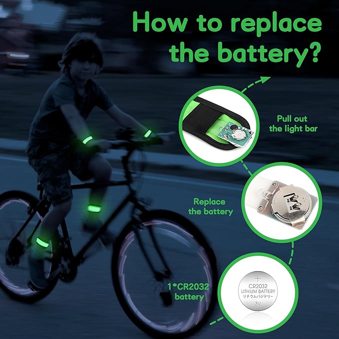 - Reusable: Each led wristband can be replaced with batteries when they run out, making it easy to continue using. Light up wristbands uses 1 × CR2032 batteries and can be purchased at most major stores. You will receive 6 pcs green light up snap bracelet