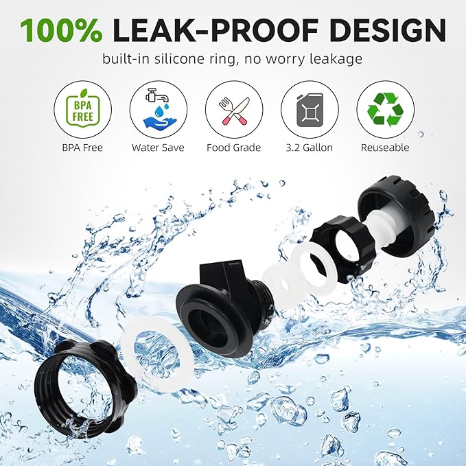 - 【LEAK-PROOF Lid & Water Spigot】Our Camping Water Storage has has a sealing cover and leak-proof faucet that ensures safe storage and easy transportation, without worrying about leaks or spills while in use. It a unique faucet design and 2 extension spigot. Compared to other containers, you don't have to struggle to unscrew the lid, you can dispense water with a simple knob and control the water volume. The extension pipe can be stored in the grooves of the barrel body making storage more convenient.