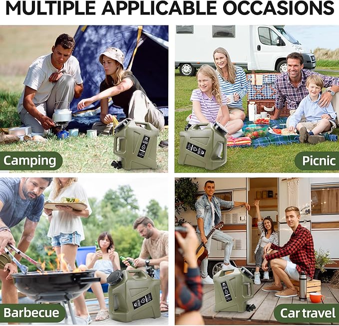 - 【Multifunction Use】The water storage can be used to store drinking water, beer, drinks for camping, camping, picnics, barbecue, and hiking. The water storage can be used to quickly and safely store all the water your family needs in the event of natural disaster. It provides you with a reliable source of water wherever you go for outdoor activities.