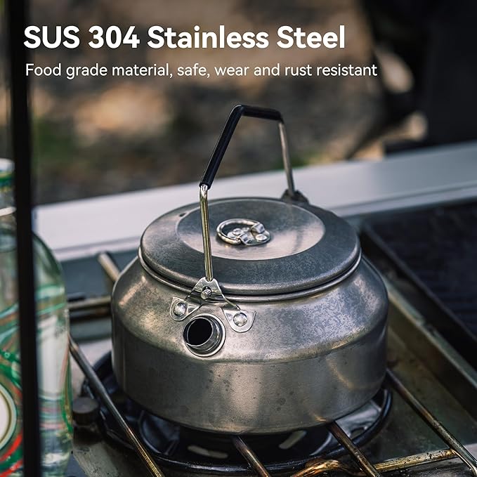1L Camping Kettle, Portable Camp Tea Coffee Pot, Lightweight Stainless Steel Teapot, Fast Heating Boiling Water, for Outdoor Campfire Hiking Camping Picnic