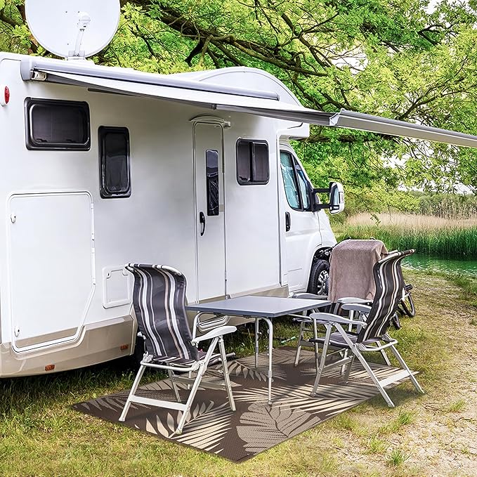 - Perfect Choice For RV Camping: Woven from lightweight plastic straws, these RV outdoor rugs fold compactly to fit in the included carry bag. This portable waterproof outdoor rug is easy to carry, with 4 corner loops and stakes to secure it. Using this camper rug reduces travel fatigue and adds plenty of space for fun — also a stylish touch for fall decor when setting up your campsite
