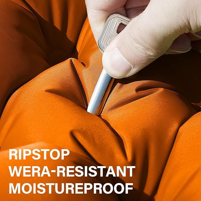- 【ADVANCED CAMPING DURABLE MATERIAL】- The 2-person camping sleeping pad is made of 40D nylon and TPU coated material, durable, hard-wearing, and no tearing. The camping mattresses are easy to clean, if there is dust or grime, just wipe them down. Designed for harsh outdoor environments, it is your best companion while camping.