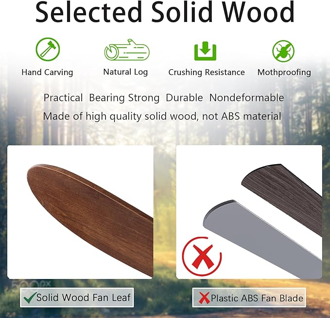 - ◆ Natural Wood Fan Blades: The dearnow 42” fan features three natural walnut fan blades with a choice of 5-inch, 10-inch and 14-inch extensions, allowing you to choose the optimal height for your space, with an overall height of 12 inches, 17 inches or 21 inches from the ceiling to the base.