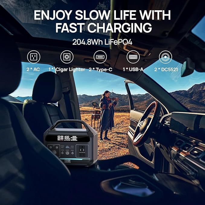 Portable Power Station 300W (600W Surge), 204Wh Solar Generator LiFePO4 Electric with AC&DC Outlets Fast Charging for Outdoors Camping Essentials Backup Bank Emergency, RV, Off-Grid Living