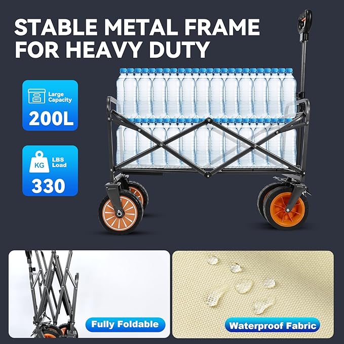 - ▶ 【All-Terrain-Fit Wheels】Utility Foldable cart with 8.5" diameter big all-terrain wheels move smoothly for any occasion, such as fishing, camping, shopping, gardening and Sports.The waterproof fabric is 600D Oxford which won’t tear when sharp objects are placed inside.