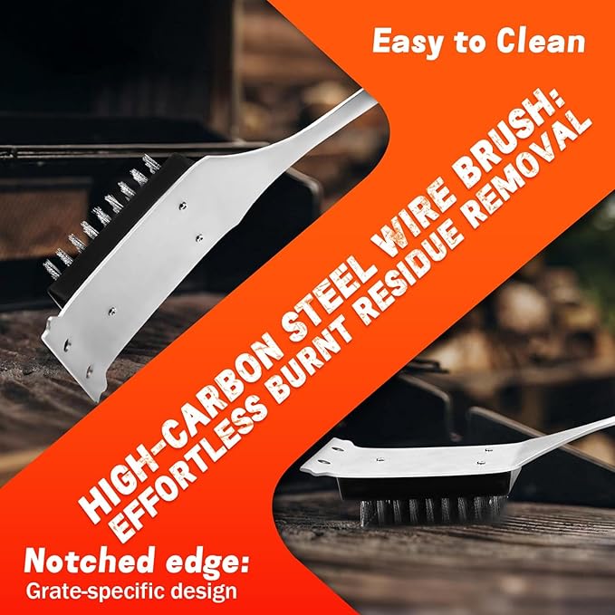 - Heat Safe Design: Extra-long 19" stainless steel BBQ grill tools keep hands safe from heat. Silicone grips stay cool and comfy for long BBQs. No more burns or dropped food—enjoy flawless BBQ every time