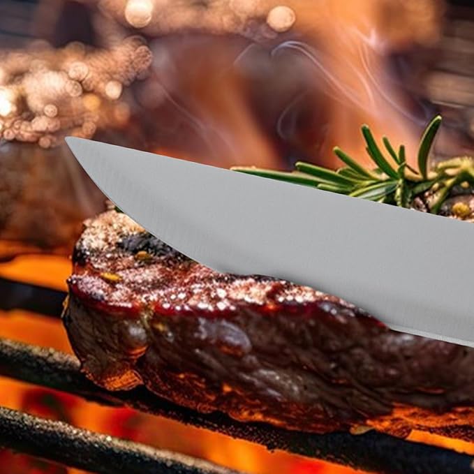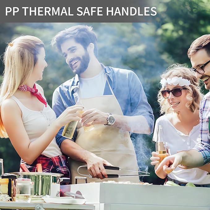 - 【Innovative and Practical Design】This grilling accessories includes a multifunctional spatula,grill brush,knife,fork,basting brush,grill tongs.The heat-resistant large handle has a smooth touch.The forged stainless steel knife is sturdy and durable,helping you easily handle large pieces of meat and make perfect grilled meat.