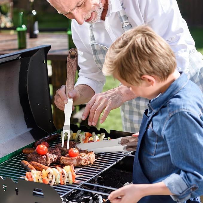 - 【DURABLE EXTRA THICK STAINLESS STEEL】Crafted from robust Heavy Duty stainless steel,the grilling tools are rust-proof and built to last.Each grilling tools is designed to withstand multiple uses without bending or cracking,ensuring that your grilling adventures remain enjoyable.