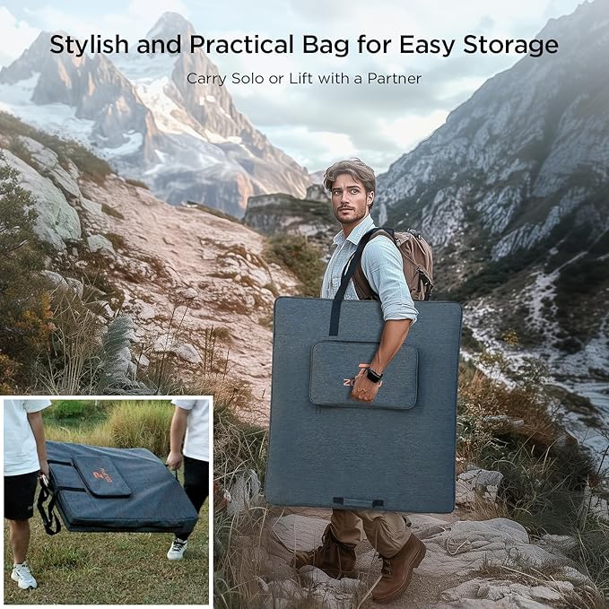 - 【Lightweight and Resilient】Crafted with advanced fiberglass material, the 450W solar panel portable combines exceptional strength and reduced weight—20-30% lighter than traditional 400 watt solar panels, weighing just 26.78 lbs, making it the ultimate portable energy solution. The fiberglass structure offers outstanding durability, corrosion resistance, and thermal stability, ensuring long-lasting performance in outdoor activities