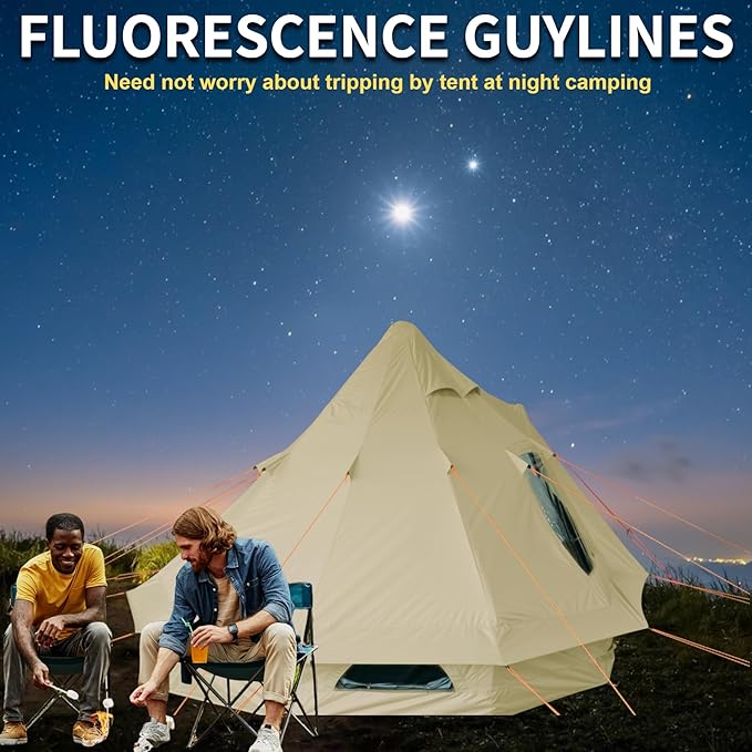 - 4 SEASON LUXURY GLAMPING: 6.2" zippered cable port on side wall for A/C pipes (β€5" diameter) or lights/fan electric wire. Customizable sealed stove jack can be cut a hole(οΌ8'') to fit almost tent stoves. The sealed design is also suitable for campers who do not use the stove to reduce leaking.