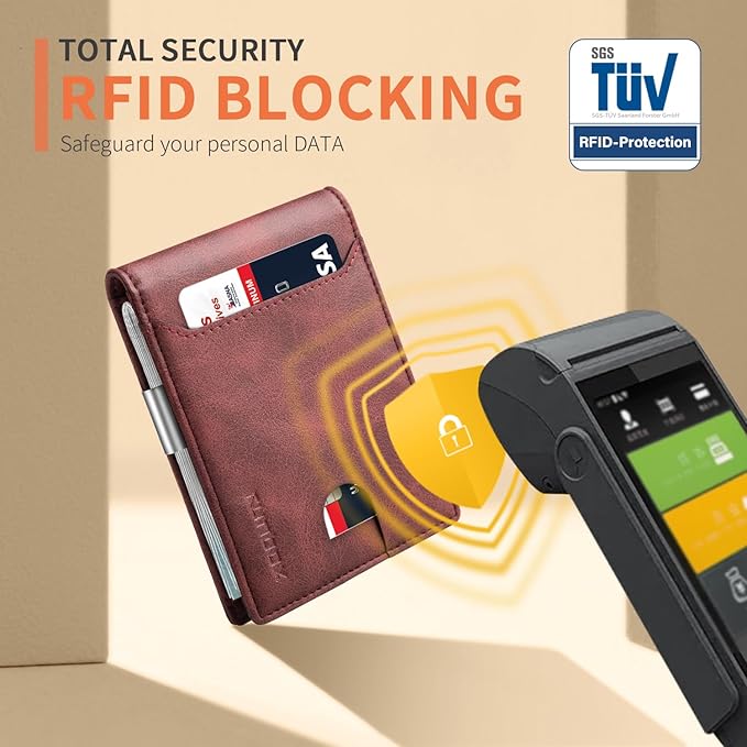 - šš šš šš§šš¢-šš”ššš šššššššš - this slim wallet for men equipped with German Instiute Certified RFID Security technology, a unique metal composite, engineered specifically to block 13.56 MHz or higher RFID signals to protect the valuable information and privacy