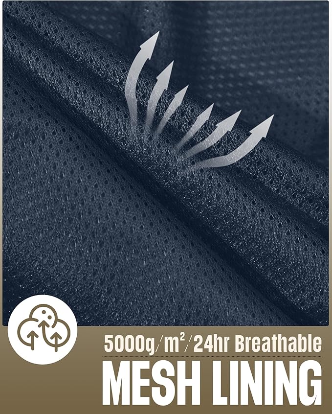 - Breathability: Packable rain jacket mens is breathable at 5000g/m2/24hr for excellent comfort. The raincoat for men lining is made of breathable mesh fabric, which allows air to circulate quickly and effectively absorbs water vapor to keep you dry and cool.