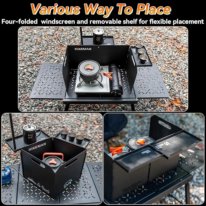 HIKEAMN Camping Stove Windscreen - Outdoor Folding Gas Stove Windshield,Camping Wind Blocker,Cooker WindScreen with a Storage Bag for Camping,Hiking,Picnic,Cooking (Black)