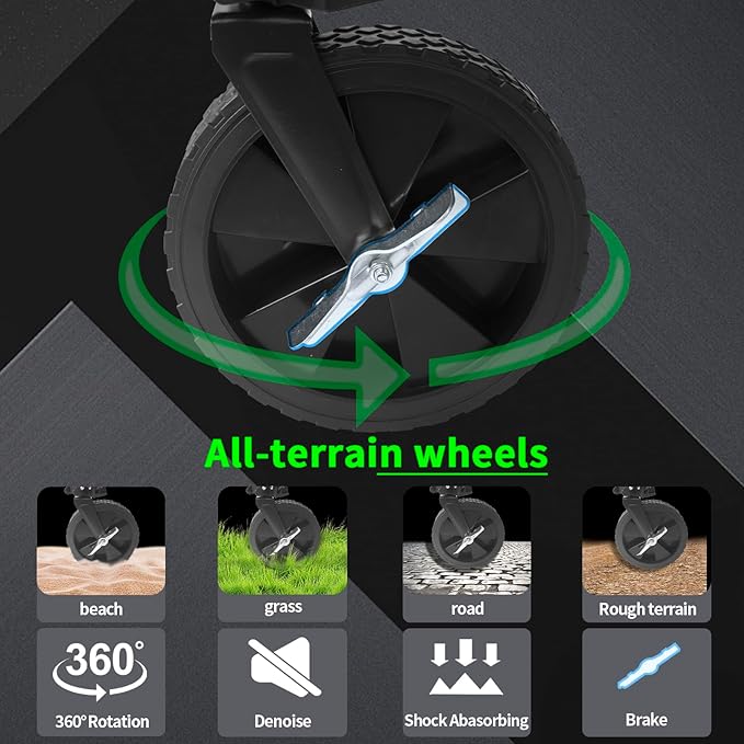 - 【 Smooth and Maneuverable】: We've designed our collapsible wagon with ultimate maneuverability in mind.The all-terrain wheels ensure a smooth ride on any road, and the front wheels have a 360-degree free rotation with high-precision steel shafts for maximum flexibility and control.Whether you're navigating crowded streets or rough terrain, our folding wagon will get you where you need to go with ease.