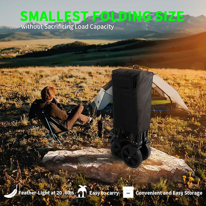 - 【MULTIPURPOSE Collapsible wagons carts】Our all-terrain wagon serves a multitude of purposes, making it the perfect companion for outdoor camping, family shopping, gardening, beach trips, fishing, sports, and more.With this Collapsible wagons carts , you can bid farewell to heavy backpacks and travel with ease and convenience.
