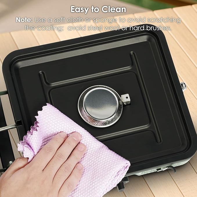 - 【Durable and Easy to Clean】The foldable camping stove is built for durability with a high-temperature-resistant steel body and a corrosion-resistant stainless steel burner. The camping stoves portable propane upgraded non-slip matte grate keeps pots stable, while key components are easy to disassemble for cleaning. The portable propane stove's heat-resistant coating on the stove surface ensures simple, hassle-free maintenance.