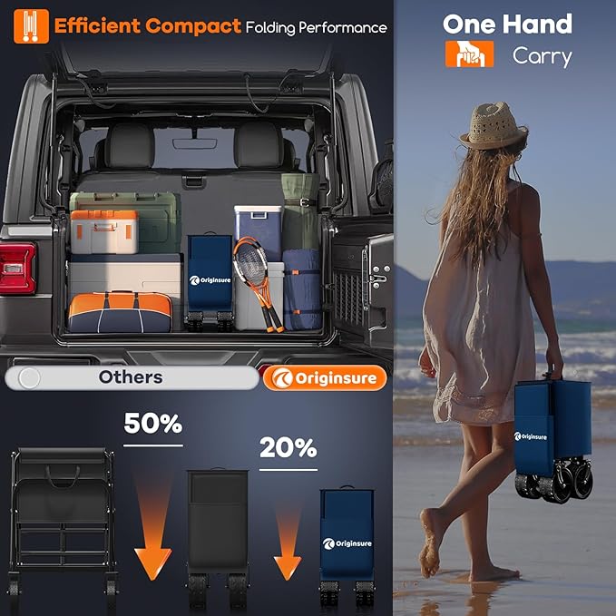 - ใ๐ณ.๐ฒ๐ต ๐ฐ๐ ๐ณ๐ ๐๐ฎ๐ฟ๐ด๐ฒ ๐๐ฎ๐ฝ๐ฎ๐ฐ๐ถ๐๐ ๐๐ถ๐๐ต ๐ฆ๐บ๐ฎ๐น๐น๐ฒ๐ฟ ๐๐ผ๐น๐ฑ๐ฒ๐ฑ ๐ฆ๐ถ๐๐ฒ ๐ฃ๐ผ๐ฟ๐๐ฎ๐ฏ๐น๐ฒ ๐๐ผ๐น๐น๐ฎ๐ฝ๐๐ถ๐ฏ๐น๐ฒ ๐๐ฒ๐ฎ๐ฐ๐ต ๐ช๐ฎ๐ด๐ผ๐ปใOriginsure foldable wagon cart, 37.40 "L x 24.21 "W x 24.00 "H large unfolding size, 7.69 cu ft/220L massive storage space, double the capacity of similar wagons. Adopting an innovative folding design that maintains its height, the Capacity reduces to 1.36 cu ft when folded, only 1/3 of other carts. Compact and space-saving, it can be perfectly stored in the car trunk and room corners.
