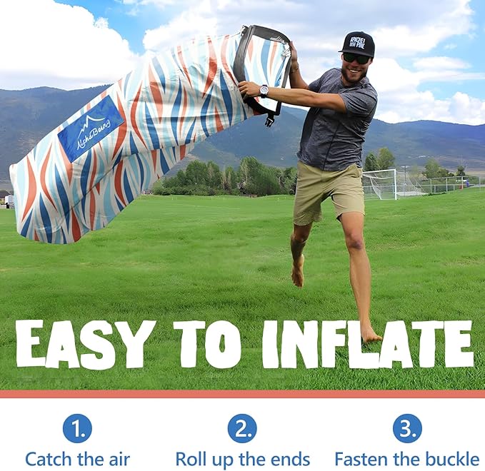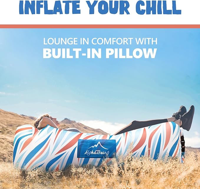 - Easy Inflation Design -- No pump required for AlphaBeing air lounger. Just a few scoops of air and this inflatable lounger is ready to hangout in. This is a must-have for any BBQ, beach, hike, concert, or camping trip. Folding to 12"x 8"x 4"and fitting in its own carrying bag with shoulder strap, this air sofa is ready to be taken anywhere with you.