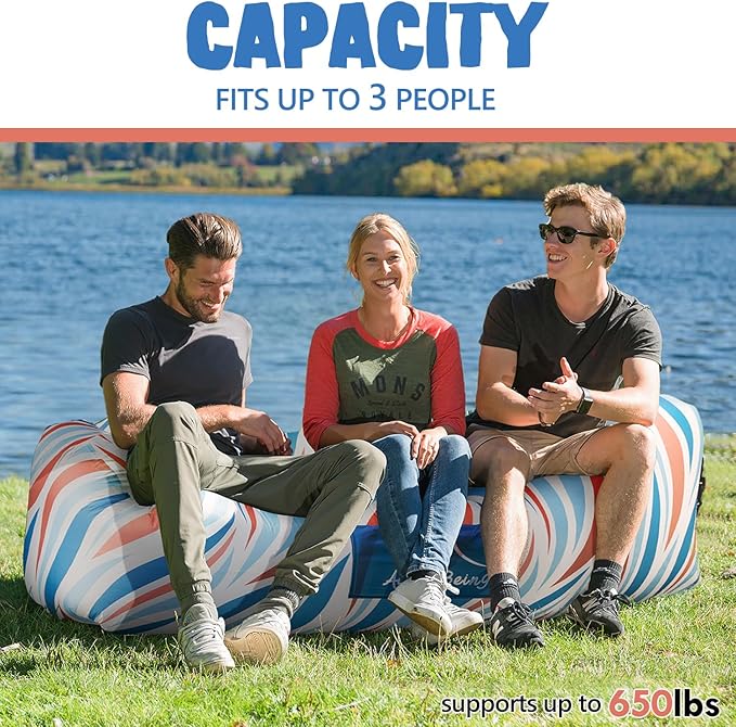 - Anti-Deflation Technology -- Love the idea of an inflatable couch but hate the idea of constantly needing to fill it up? Thanks to our anti-deflation technology, our air chair retains air twice as long as other Inflatable Loungers for an experience that is amazing! Our lounger is made with superb craftsmanship and high-quality Ripstop fabric that is lightweight, comfortable and strong enough to support 650lbs!