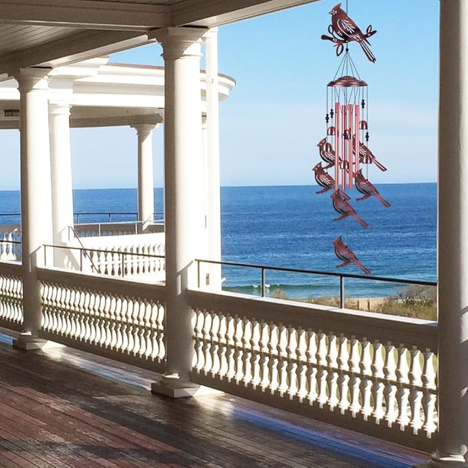 - BEAUTIFUL DECORATION: Suitable for both indoor and outdoor use.No toolbox needed. Beautifully cardinal wind chimes are good for the outdoor garden, hall, patio, lawn, yard, living room, bed room decoration, as well as window, door corridor, balcony, wall or even room. easy to just hang your new chime on the ceiling, tree, plant or other place to decorate your home and garden.