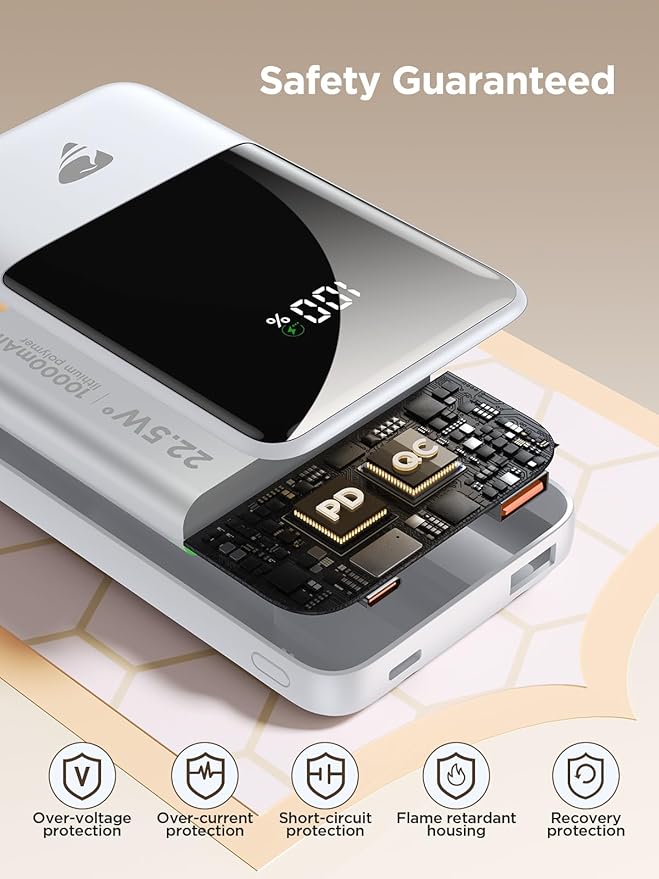 - ULTRA-COMPACT DESIGN: With this 10000mAh power bank, you may charge iPhone 16 pro about 2.8 times, a Google Pixel 9 about 2.1 times, all these power has been compressed into a compact body which weighs only 209g/0.46lb. The dimention of this slim power bank is 110mm*69mm*17.5mm/4.33"*2.72"*0.69", smaller than most smart phones! Whether you're traveling, hiking or just chill in a bar, this will be a reliable phone backup battery bank to keep your device in power all the time