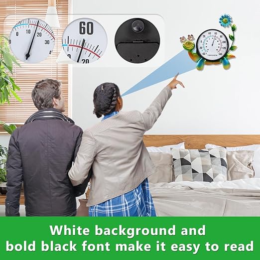 - No Batteries Required: The outdoor thermometer has a built-in special copper plate movement, which displays the temperature through different bending degrees in different temperature environments. No batteries are required, and it is very convenient to use indoors or outdoors