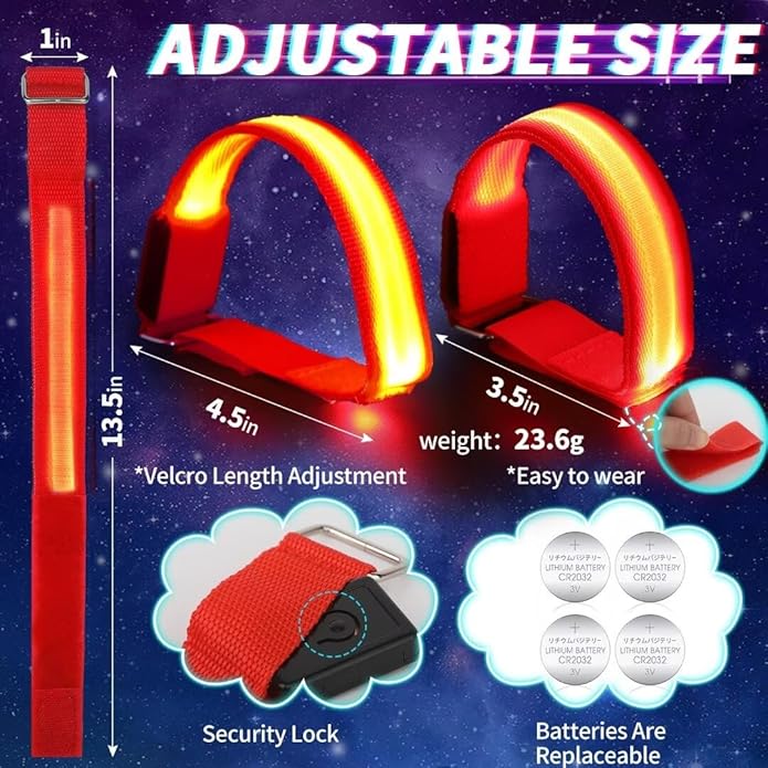 - Adjustable Multi-Size Fit: Specially designed oversized band fits wrists/ankles/arms (28cm-32cm) from kids to plus-size adults. Wear for raves, jogging safety, or cosplay props—no tightness