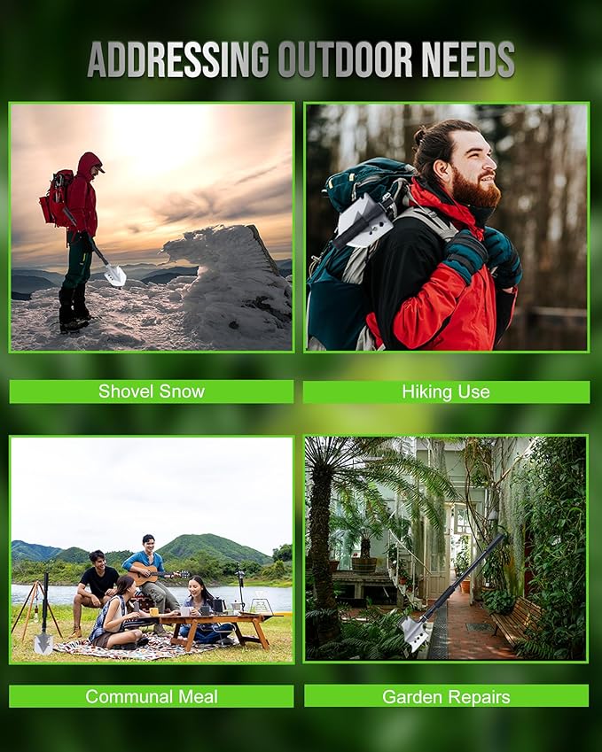 - Wide Appliaction - Design for outdoor and indoor, such as camping, gardening, expedition, fishing, hunting, snow shoveling, exploring, traveling, and hiking