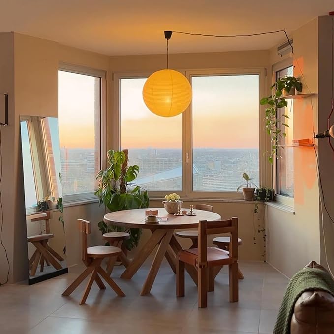 - [Showing Individuality]- Our handmade rice paper adds a soft natural texture that sets us apart. The paper shade lamp measures 19.68 inches in diameter, top opening 4.72 inches, bottom opening 3.14 inches. Large, decorative, and easily noticeable, it adds a beautiful landscape to your home and makes your home more cozy and fragrant.