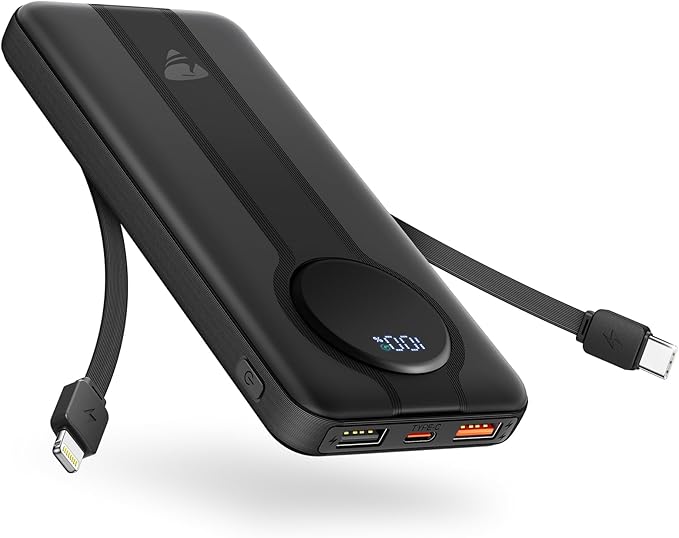 - 【Large Capacity & Intelligent Display】: This portable charger with built in cable has a large capacity of 10000mAh, which can easily meet the charging needs of multiple devices. Equipped with an intelligent LED display, which accurately shows the remaining power and charging status, allowing users to keep track of the charging situation at all times