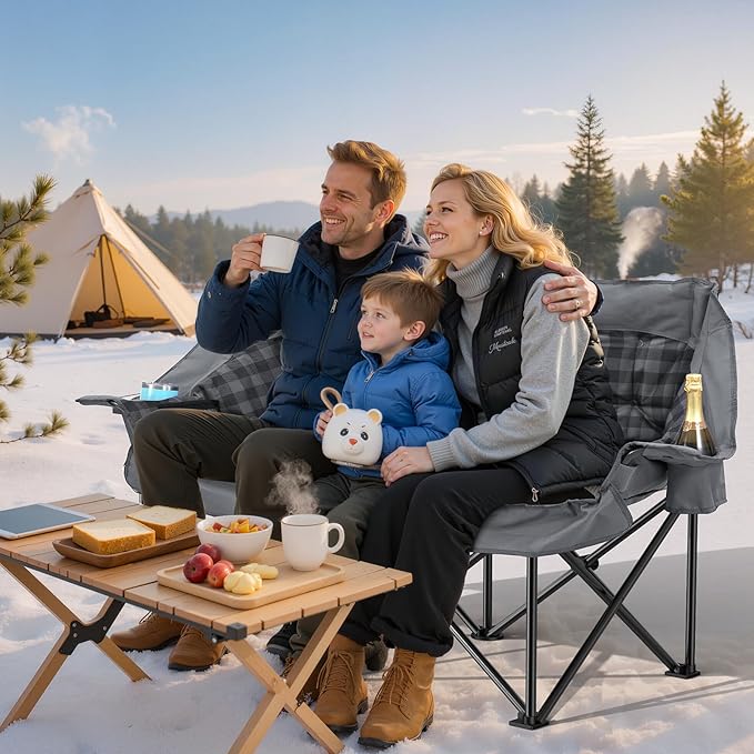 - Personalized Design: The camping loveseat features 2 large and adjustable cup holders for your favorite beverage, it ensures premium comfort in every winter moment. Enjoy the extra room of this oversized camping couch.