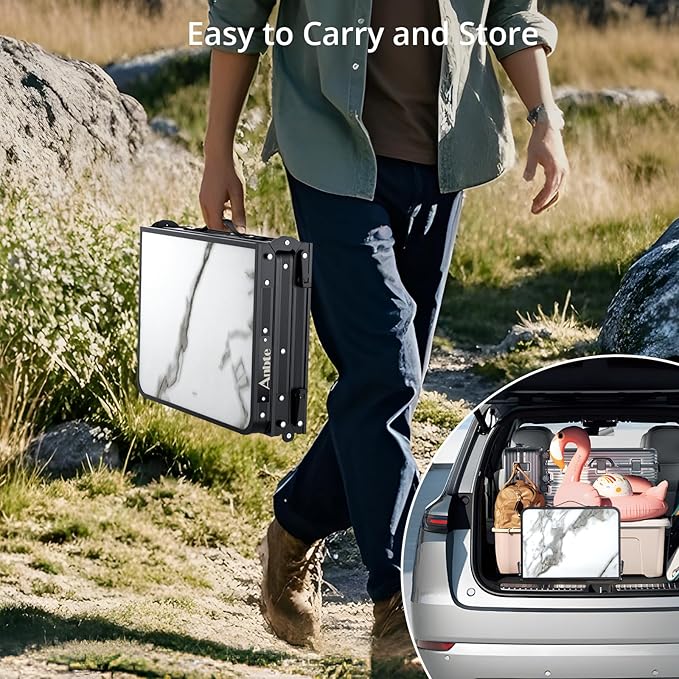 - 【Premium Quality Materials, Strong Load-Bearing】 Anbte portable folding table's frame is made of thickened aluminum alloy and can hold up to 66 pounds, making it extremely stable. It comes with a U-shaped frame and buckles for added stability and durability